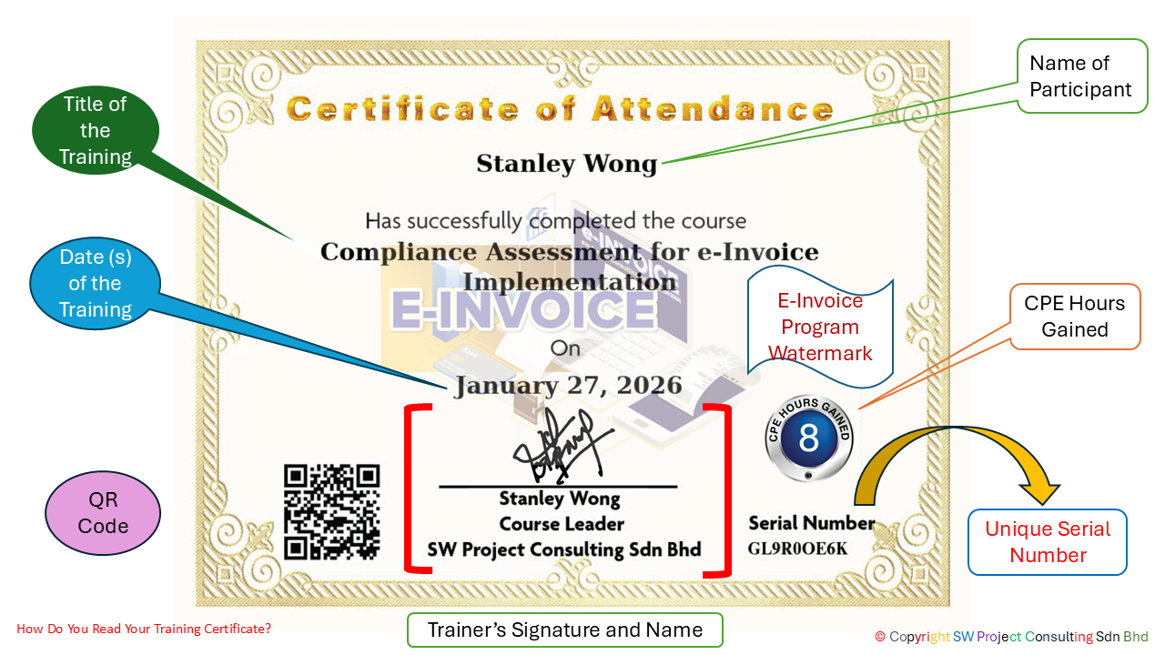- e-Invoice or SST watermark or no watermark if conducted by guest trainer